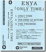 NOTE Promo con CD acetato. Il CD reca stampato Enya e Only Time nella parte superiore (stessi caratteri stampati sulla cover), mentre nella parte inferiore il logo della WEA.